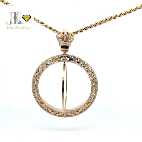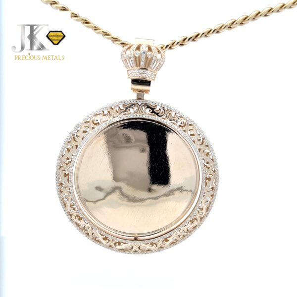 9ct Gold Large Stone Set Crown Circle Spinning Picture Pendant 3″