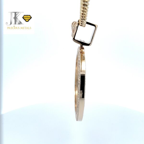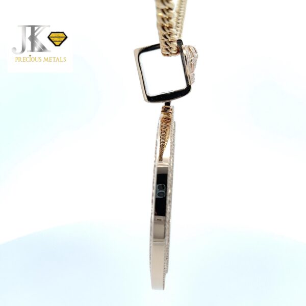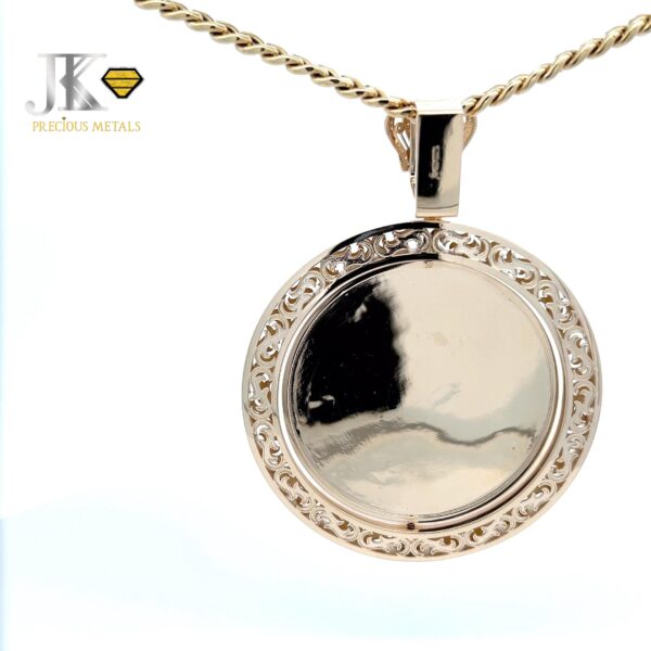 Be the first to review “9ct Gold Large Stone Set Crown Circle Spinning Picture Pendant 3″”
