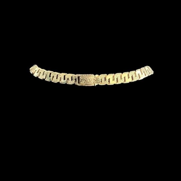 Be the first to review “9ct Gold Patterned Kids Z Link Anchor Chaps Bracelet 6″ 10mm”