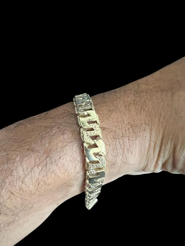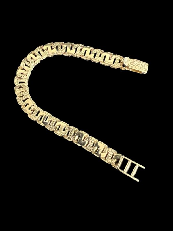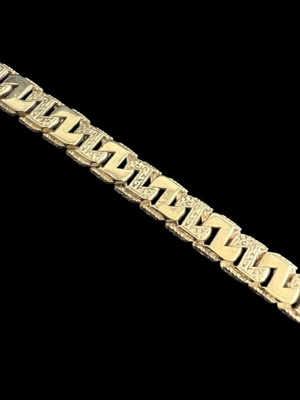 9ct Gold Patterned Z Link Anchor Chaps Bracelet 8″ 10mm Clip Clasp