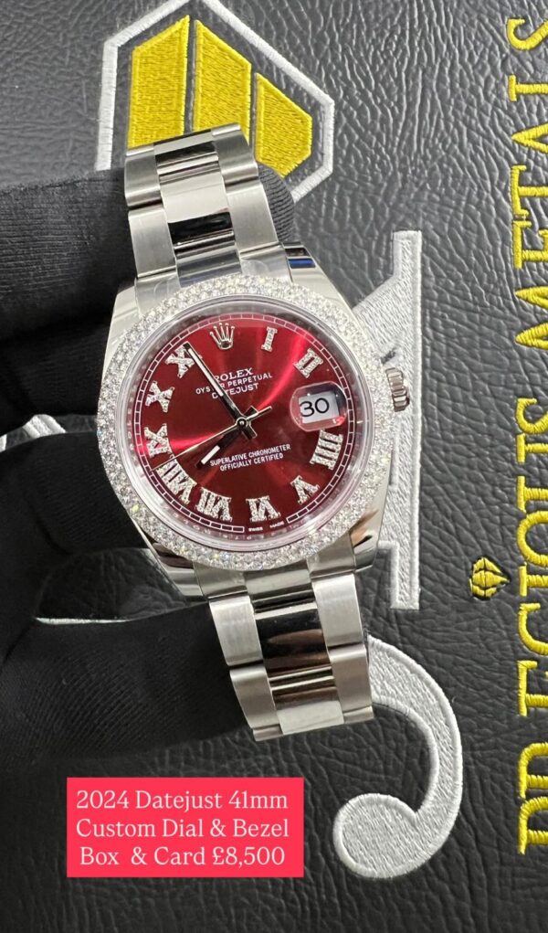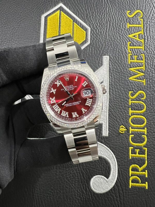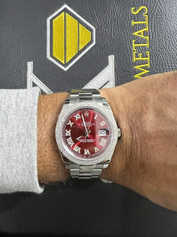 BRAND/MODEL: Rolex Datejust Oyster Bracelet Red Diamond Roman Numeral Dial